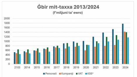 Fl-2013 mill-income tax personali l-Gvern daħħal €522 miljun. Is-sena l-oħra daħħal €1,771 miljun – 3.4 darbiet iktar. Ikun hemm min jgħidli: In-numra ta’ ħaddiema ma...